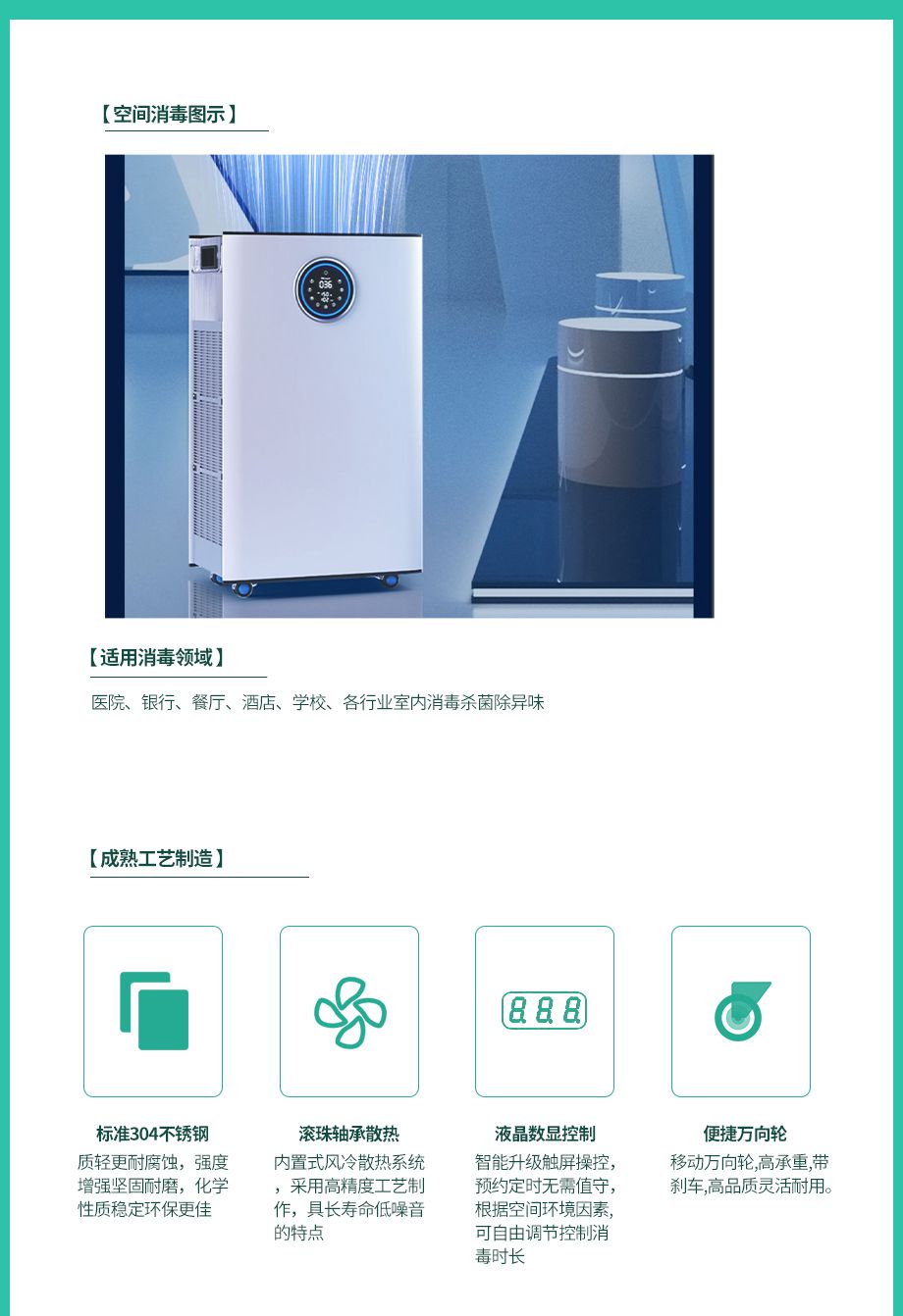 消毒黑科技1、多重净化分子级灭菌技术极光活性粒子多极快脉冲一站式解决空气净化问题。2、WIFI智控不仅可以实时监测室内空气环境,还可通过APP远程控制净化空气,智能生活更进一步。3、国家卫健委备案医用级空净消毒机【消毒产品网可查询产品备案信息】。4、6层大滤网双重消毒机制。
