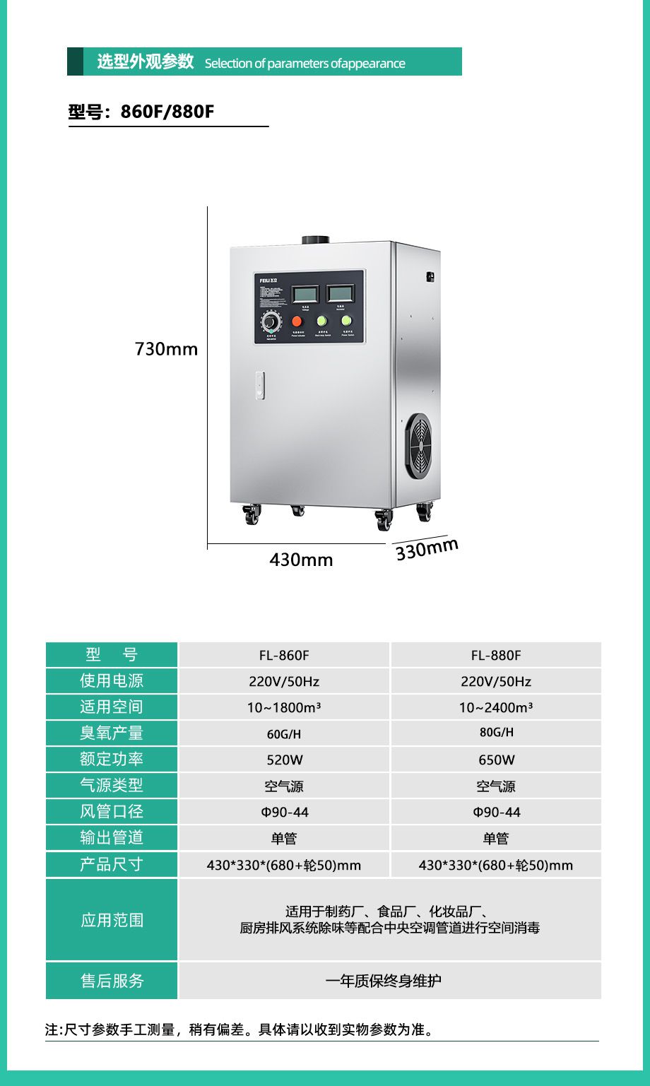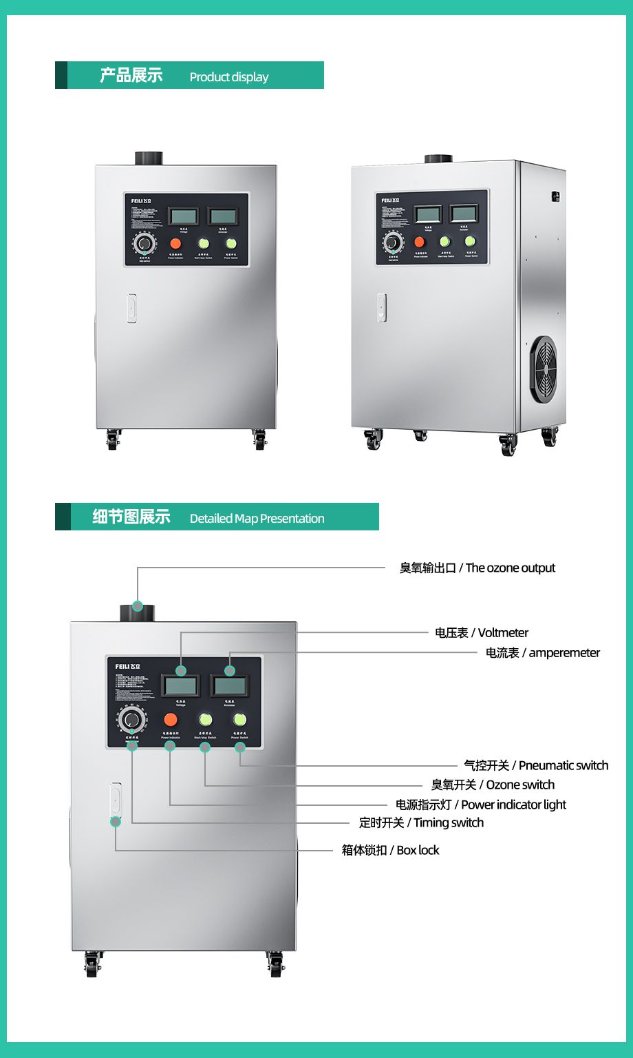 1.管道式臭氧输出设计,出风口直径90mm,可连接中央空调送风管道将臭氧输送至空间消毒。