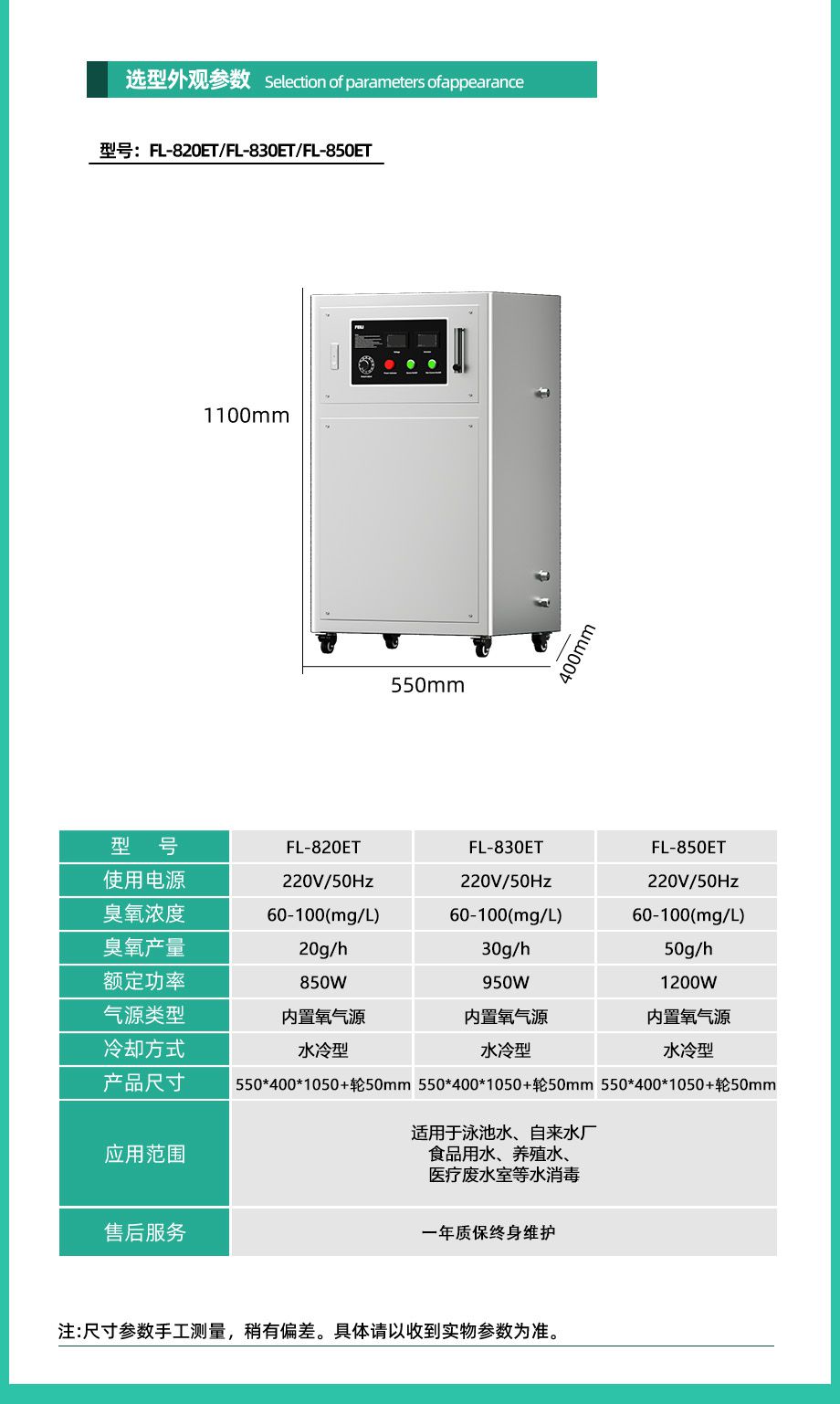 【氧气源臭氧发生器】FL-820ET/FL-830ET/FL-850ET 臭氧浓度80-120mg/L