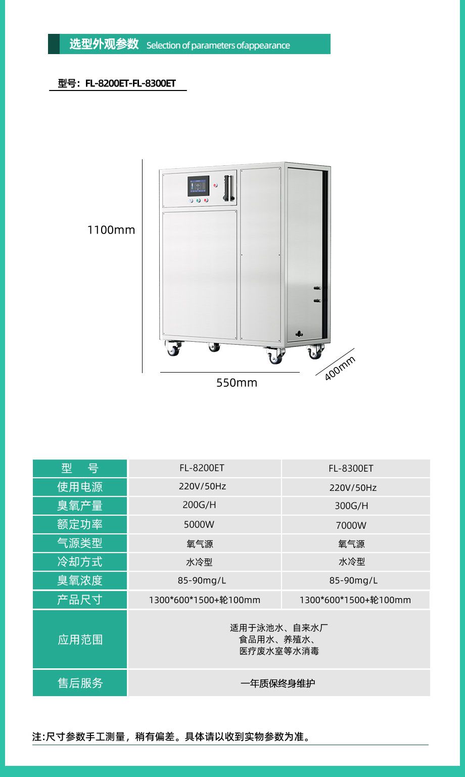 【氧气源臭氧发生器】FL-8200ET/FL-8300ET 臭氧浓度80-120mg/L