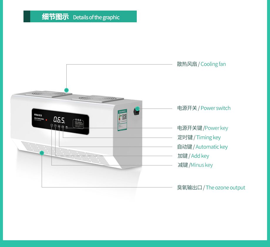 使用寿命长该系列臭氧发生器采用极其稳定,效率极高,超长寿命的钛金脱羟石英结构放电单元,放电均匀度极高,臭氧产量大,浓度高,防腐蚀且散热快,放电面不生成氮氧化物及其它有害污染气体。独特的耐臭氧双管路设计。国际知名质量认证拥有国际CE认证书,可出口欧盟多国,质量达出口标准。不占空间挂壁式机箱外形,可直接挂上墙壁美观大方不占空间。自动开关机外置微电脑时控器,可设置一周七天不同开关机定时,自动开关机,不需要人为操作,方便简单且节省用电开支,环保低碳。