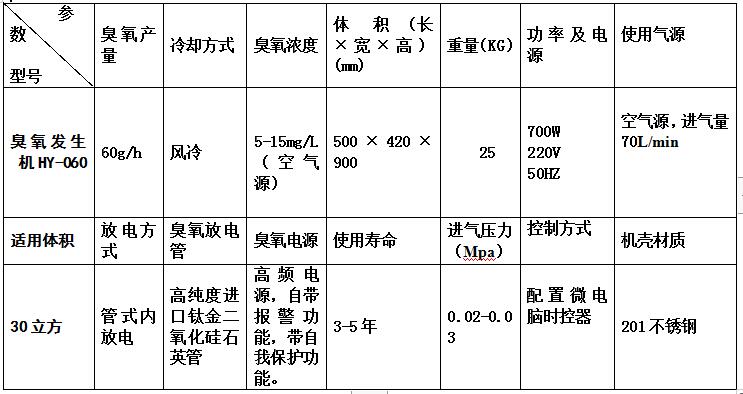 臭氧产量:≥60g/h
