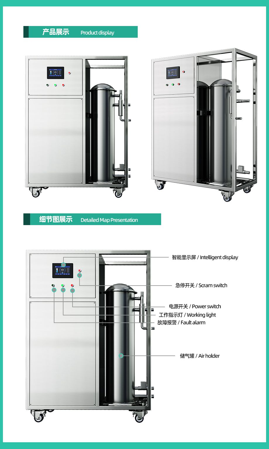 4、臭氧浓度可调节,并且可根据消毒需求外接氧气源;