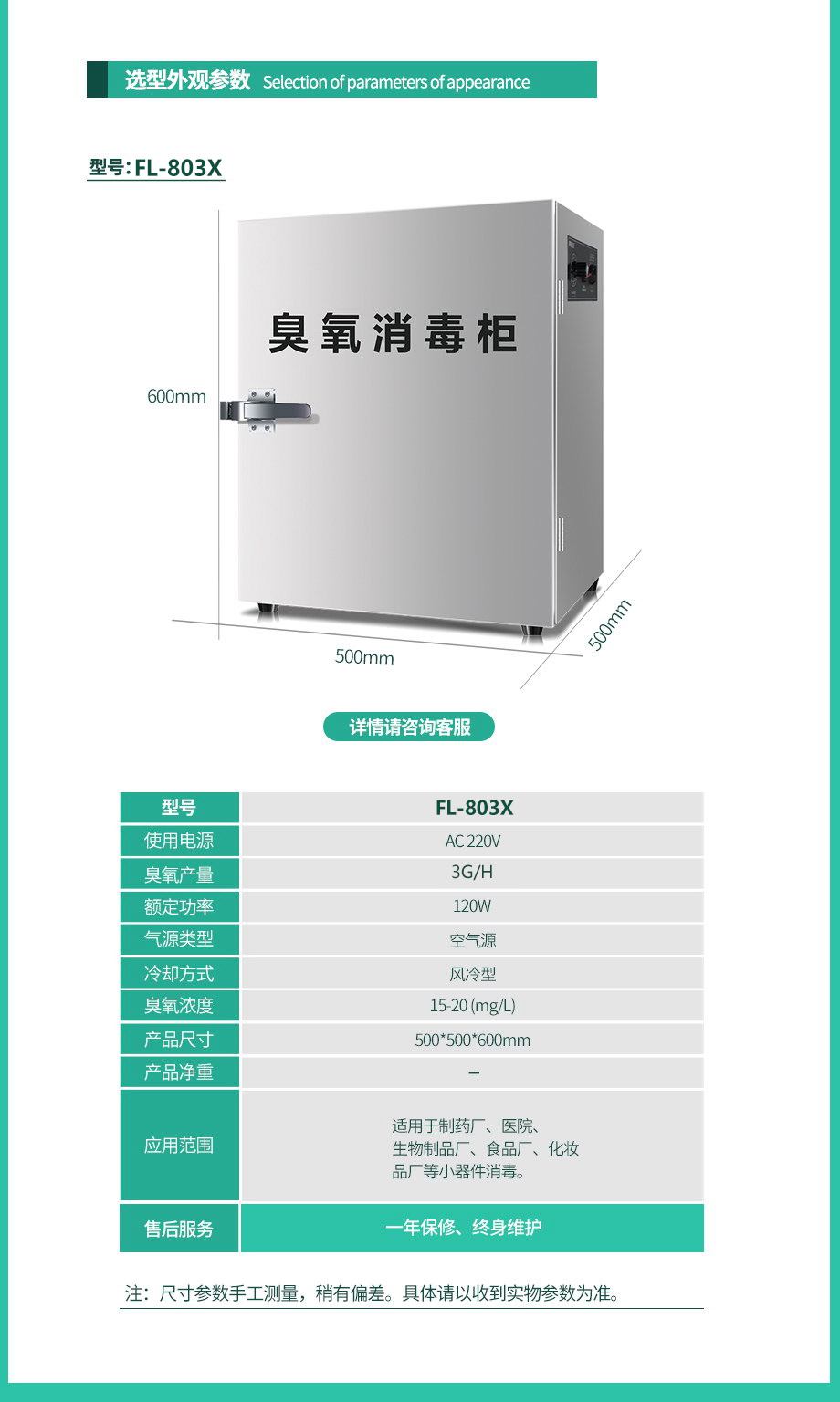6.根据消毒空间面积订做的臭氧消毒柜,让臭氧产量的投加更合理(可定制)